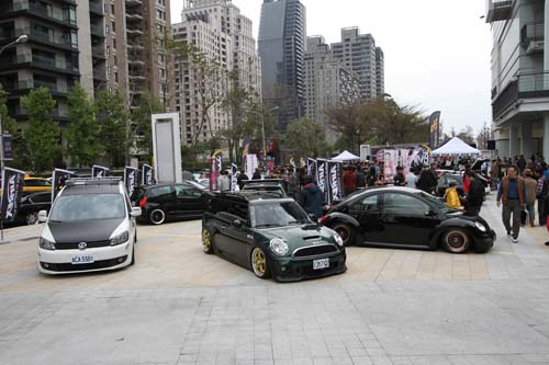 這場由E-51 Car Studio舉辦的海拉風派對,活動地點選在過去不常見的台中Tiger City門口廣場與周邊兩個停車場內,也或許是因為活動地點選在交通便利的市區,因此當天包含參展與觀展的車輛數多達200多部,還不包含周邊道路旁停車格內的車輛數,因此當天整個活動人氣可是強強滾,相當成功。而既然號召這麼多部海拉風靚車聚集在一起,沒有來個選美比賽似乎有些可惜,因此E-51 Car Studio特別針對每部參展車的改裝方式、俱備元素與車主裝扮等,進行評分選出前三部最符合海拉風格的車來進行頒獎,讓活動有了更具意義的焦點。