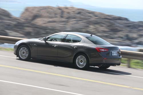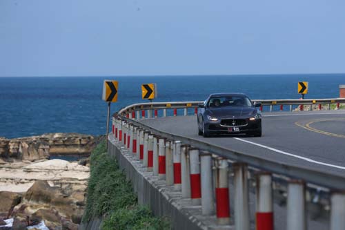 較短的軸距、較輕的重量與較為緊湊的身形,Ghibli跑起來確實比Quattroporte更輕快,懸吊一開始雖然感覺有點硬,面對顛簸路面與坑洞時所產的衝擊力較為顯著,但隨著行進節奏逐漸加快,原本有些偏硬的避震器反而變得剛剛好,震動的情況改善許多,且轉過第一個高速彎角時,車身雖然會產生一定程度的側傾,但避震器依然能夠將車身撐住,18吋跑胎也分擔了些許的側向離心力,同時也展現出該有的循跡性,讓我們敢用更快的速度去發掘Ghibli的實力所在。過彎速度愈快,Ghibli的獨特性也開始漸漸被突顯出來,Ghibli因為是標準的FR前置引擎後輪驅動,在車身配重方面做到完美的前後50:50,重心點在車身正中央而讓前輪保有較為敏銳的指向性,重心轉移的回饋也較為清晰,比起前後配重為51:49的Ghibli S Q4來說,Ghibli的速度雖然慢了一點點,但手感更好,動力輸出也較為線性且溫和,讓駕駛者的自信性更高而讓330匹馬力可以發揮得淋漓盡致。