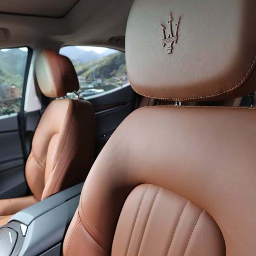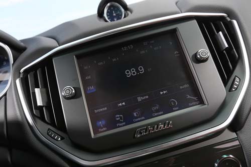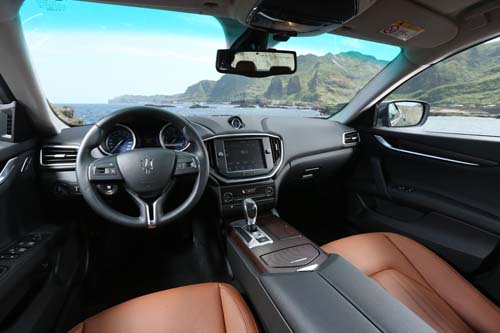 車內的座椅、皮革、飾板均符合了人們對義大利精品的印象與質感,來自Poltrona Frau的皮革座椅,作工精緻且細膩的車縫線勾勒出座椅的典雅型態,而咖啡色皮革、黑內裝與立體紋路木紋飾板的組合,在兼顧到Maserati特有風格的展現之外也符合國內的消費需求。至於視聽影音及通訊介面部分,MTC(Maserati Touch Control)觸控8.4吋液晶螢幕主機除了有藍牙匯流、DVD與MP3等娛樂系統,甚至連原廠內建的繁體中文衛星導航也涵蓋其中,充分展現Maserati欲以Ghibli打入國內高級房車主流市場的企圖。