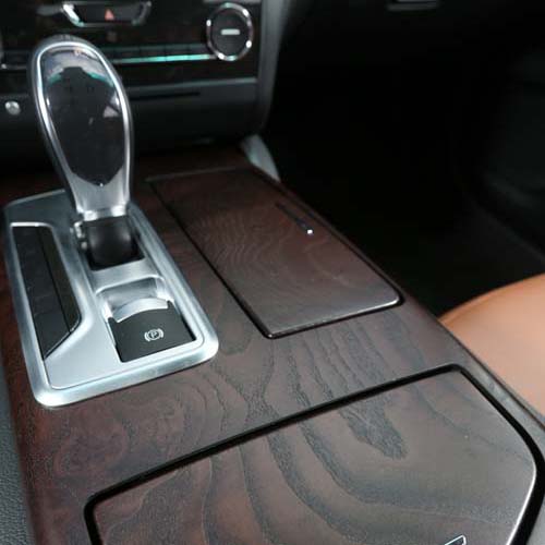 | 排檔桿左側的行車模式控制按鈕提供I.C.E.與Sport功能,立體紋路的木紋飾板也是標配項目。 |