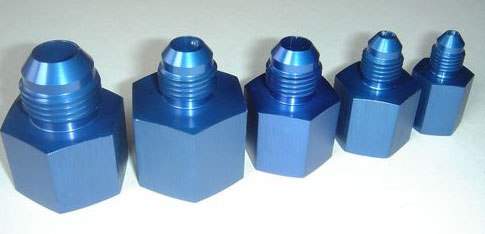 PR◎NE大變小鋁合金轉接頭,質輕,採硬陽極處理,可使用於汽車上的各式管路,能承受約15,000psi之高壓而不膨脹不洩漏,備有5分轉4分/3分,4分轉/3分,3分轉2分等各種大小尺寸轉接頭。