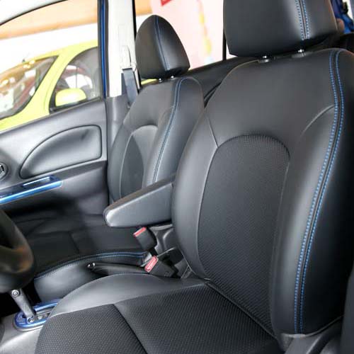 | 新年式Nissan March全車系配置皮質座椅。 |
