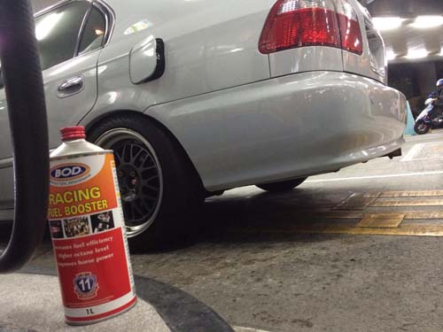 現在的油價超貴的,不然以K8原廠單凸有V引擎9.8:1的壓縮比來說,其實長久下來加95汽油似乎不是很理想,在朋友車行內看到上一期Option部品試用有提供BOD競技專用汽油效能提升劑,就立刻回寄明信片來試看看手氣。一如往常來到中油選擇95注入,注入前先把手氣很好抽中的BOD競技專用汽油效能提升劑全部灌入油箱內,BOD競技專用汽油效能提升劑其實沒甚麼味道,顏色也是呈現透明,讓我不禁懷疑這個東西的可靠度。加滿油後沒有任何感覺,心想應該是油管的汽油還是之前95吧!約使用了50公里後依舊沒有感覺,心想算了反正引擎不要壞掉就是老天保佑。