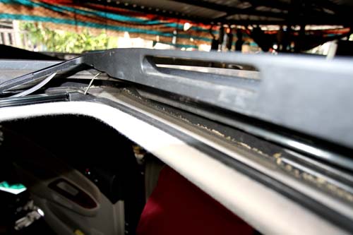 另外,配有天窗的車型,原廠在車頂內都設有排水槽與排水孔,讓滲透進車頂內的雨水能排出車外,不過如果這兩者因汙泥阻塞的話,就會導致雨水排除不及,從前擋玻璃或天窗孔週圍流進車內,因此在雨季與颱風季來臨之前,不妨自己使用小牙刷配合寶特瓶裝水,動手清潔天窗排水槽與排水孔,才能避免發生車外下大雨,車內下小雨的窘境。