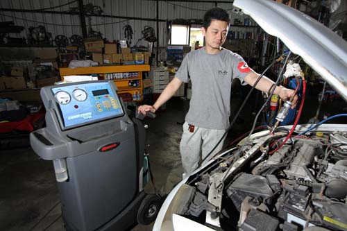 此時再壓下冷氣系統的開關(A/C ON),蒸發器內的冷煤便會開始流動,而原本飽含水氣的熱空氣在流經蒸發器時,水氣便會附著在蒸發器之上,在熱氣與冷氣的調和下,從出風口排放出來的氣流便成為溫暖而乾燥的空氣,因為它已經過熱排與蒸發器的兩道處理。因此冷暖氣系統兩者之間是完全不相干的,當然可以同時作動而且對車輛完全不會有不良的影響。因此今年的雨季中,各位大可以調出一個令自己舒適的溫度,別再委屈自己了。不過要使冷氣發揮作用,冷氣系統的作動也要正常,如果您的愛車車齡已超過五年以上,冷氣系統還沒經過保養與維修的話,筆者建議不妨趁這個機會開著愛車去做「冷氣保養」,藉由專業儀器將冷氣管路內負責潤滑冷氣壓縮機的「冷凍油」,進行全面更換,並將冷媒再次填充到足量,讓冷氣壓縮機的運作更加潤暢,冷氣更冷,並延長冷氣系統的壽命,有時車輛還會更省油,一舉數得。目前坊間的冷氣循環保養的費用大約在2500~3000元之間,有興趣的讀者不妨去電洽詢。