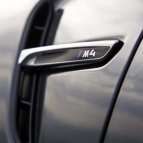 | 前輪葉子板後方的散熱孔,掛上M4銘牌更顯高人一等的優越。 |