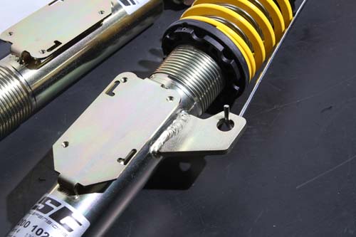 | 筒身上的各種支架與固定版的設計與角度,都與原廠避震器相同,並採用焊接結合,可有效並確實固定各種底盤結構與煞車油管,而彈簧托盤則採用塑鋼材質,可抑制轉動異音並防止鏽蝕。 |
