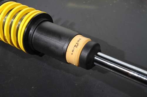 | 每支避震器上都附有防塵套與減震橡膠饅頭,前者可避免灰塵附著於筒芯內,造成筒芯表面磨損而漏油,後者可保護筒芯不會因插到底而彎折損壞。 |