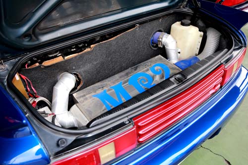 | 由於是後置引擎設計,中冷器位置相對來得較不方便,因此特別加裝集風罩來確保冷空氣可順利通過冷排帶走熱源。 |