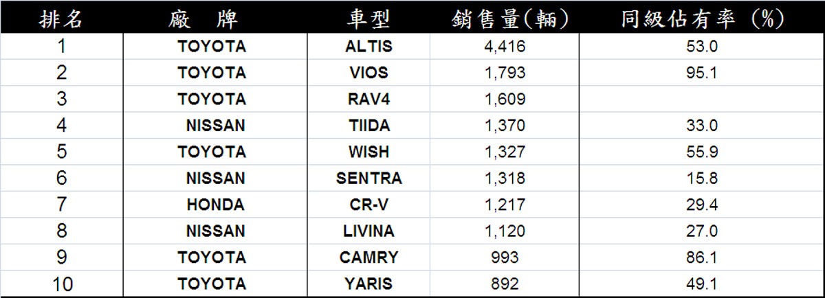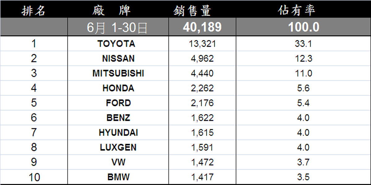 TOYOTA產銷火紅 帶動六月車市猛烈噴發