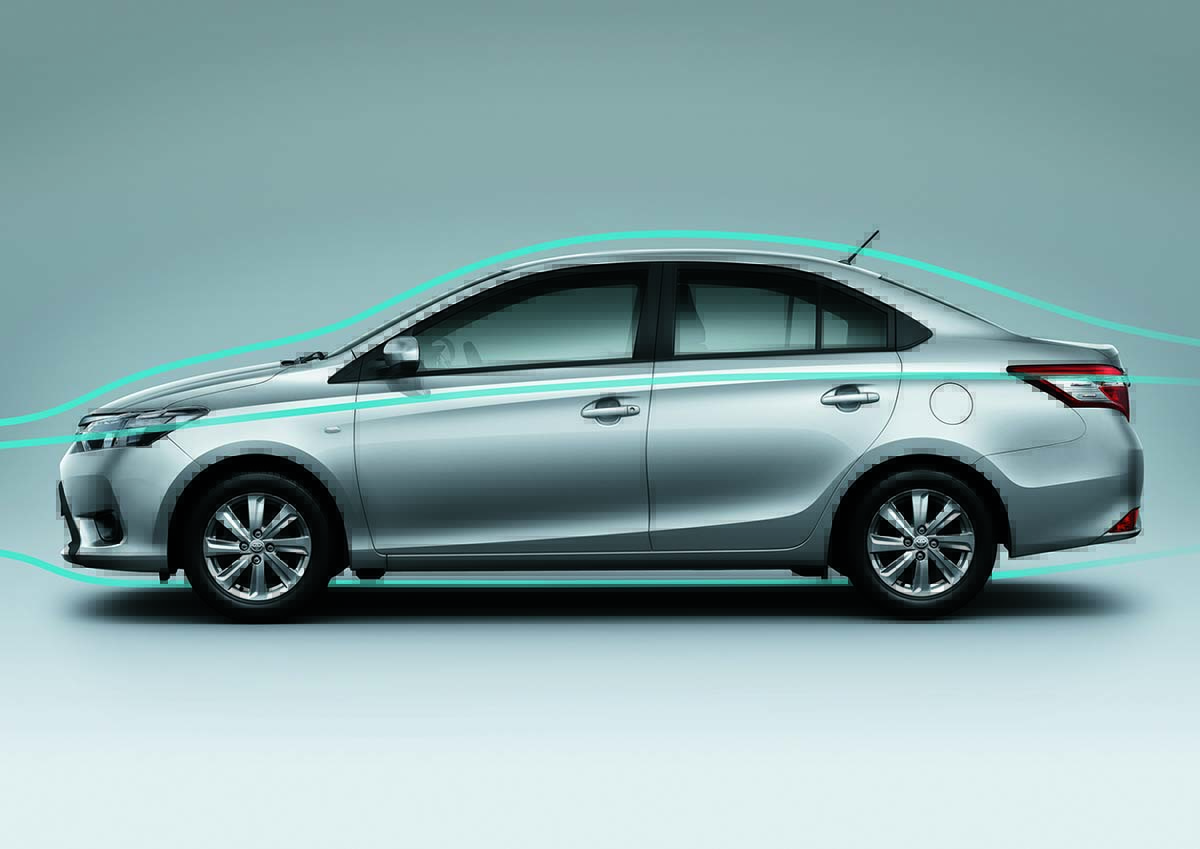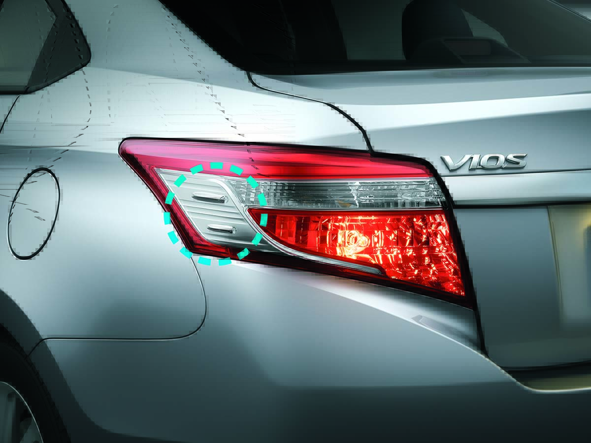 | All New Vios車頂採用非平面的艇型設計,多了兩道刻劃槽,後視鏡及後尾燈部分也增加空力穩定鰭。 |