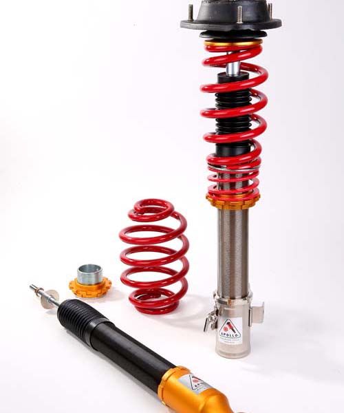 Apollo是國產避震器當中知名度相當高的品牌之一,雖然阻尼不可調,但針對部分客戶的特殊需求,Apollo提供相當完整的售後服務,可進行「舒適」、「標準」與「強化」三種設定,採用複筒、油氣混合式設計,可符合多數車主,降低車高又可兼顧舒適度與操控性的需求,對應車種齊全也是Apollo的特色。