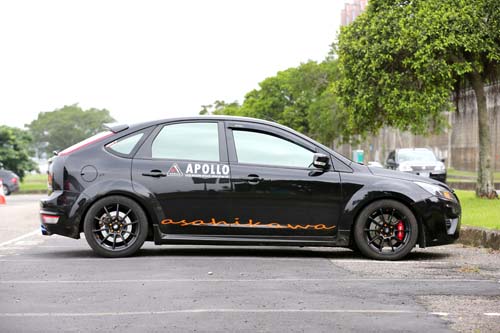 這輛Ford Focus 2.5代並沒有激烈操駕需求,而是非常均衡的設定,基於車主這個需求,前彈簧磅數為8kg/mm,後輪採用特殊的疏密彈簧、為3~5kg/mm,疏密彈簧的特色是用來吸收不同幅度的彈動,可以抑制掀背車型、車尾重量較輕的彈跳感,增強貼地性。Focus在繞錐時的靈活性相當高,車尾可跟著車頭的高速擺動、循跡性極佳,不會產生不穩定或滑動感,不讓駕駛者有措手不及的感覺。