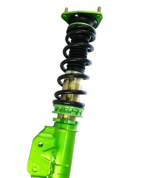 說到可調式避震器,這種車高筒身可調形式算是始祖。在更早之前,車高調整是透過降低彈簧位置的方式,這樣的做法調整幅度不宜過大,否則會影響筒芯作動行程,加速衰退、甚至損壞,因此後期為了符合消費者需要大幅降低車身的需求,進而推出車高筒身可調式。調整避震器下座位置以降低車高,這樣就不會影響筒芯作動行程,而彈簧可以適度調整鬆緊以改變軟硬度,這種設計非常合理、也符合多數偶而激烈操駕、想要降低車高的車主所需。