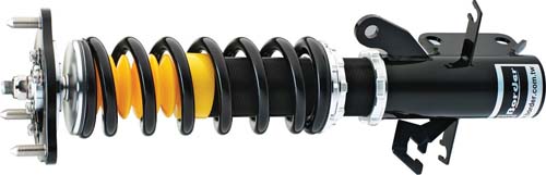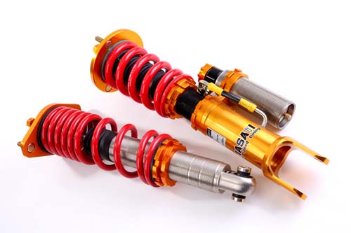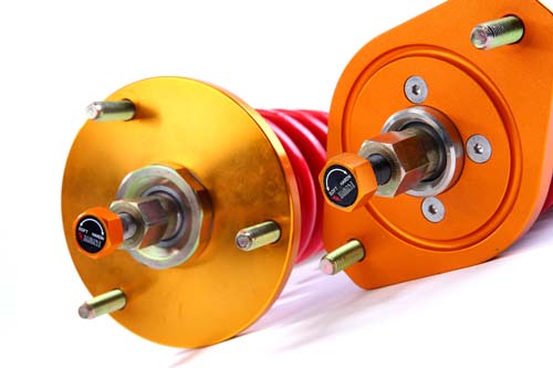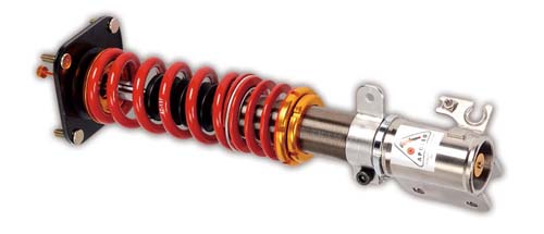 俗稱「Hi-Low Kit」,就是這種車高、筒身、軟硬,啥都能調的避震器,彈簧基本上在裝上車之後就不會再調了,筒身主要就是用來調整車高,只要筒身上的螺牙足夠,想調多低就有多低,而這種避震器最主要的功能就是軟硬(阻尼)可調。這原理其實不難,在筒芯上的工作活塞有著閥門機構,阻尼油會隨著筒芯上下作動而通過工作活塞上的閥門,其所產生的阻力就是軟硬度,所以只要可以控制閥門大小,即是調整阻尼油通過的量與流速,就是字義上的軟硬可調,簡單來說,轉動筒芯上的旋鈕就是改變閥門的孔徑。