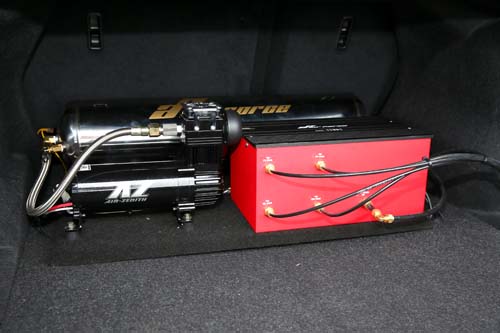 | 除了具備氣壓式避震器所需要的空壓機等周邊設備之外,這組最頂級的氣壓套件還包含了水平感知器。 |
