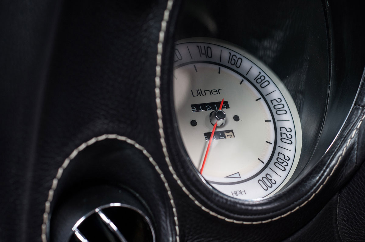 外觀部分除了棕色的珍珠烤漆,及皮革包覆的Targa可拆式車頂外,車頭部分還加裝了日行燈來增添現代感,方向燈部分也都採用上LED的全新設計。內裝部分正式Vilner的拿手好戲,重新打造的儀表板和重新以calf-nappa皮革包覆的座椅讓該車徹底重生。