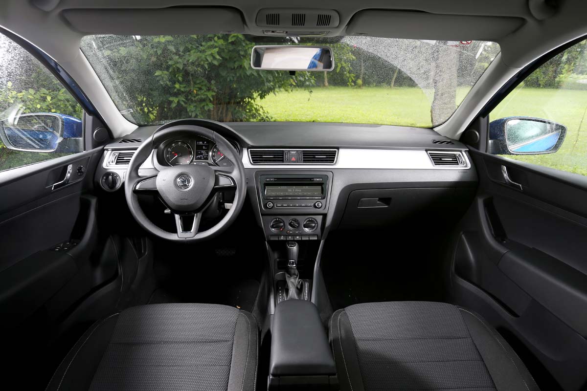 從Rapid車型衍生的Rapid Spaceback,僅外觀與掀背設定不同,其餘皆採相同配置。Skoda的座艙設計向來以樸實為取向,以往該品牌設計較為成熟,如今新世代產品已擺脫此印象,座艙中控平檯運用金屬髮絲紋飾板點綴,展現較為年輕的感受,而方向盤雖無多功能按鍵,但中央的亮面烤漆則替整體座艙營造出質感。