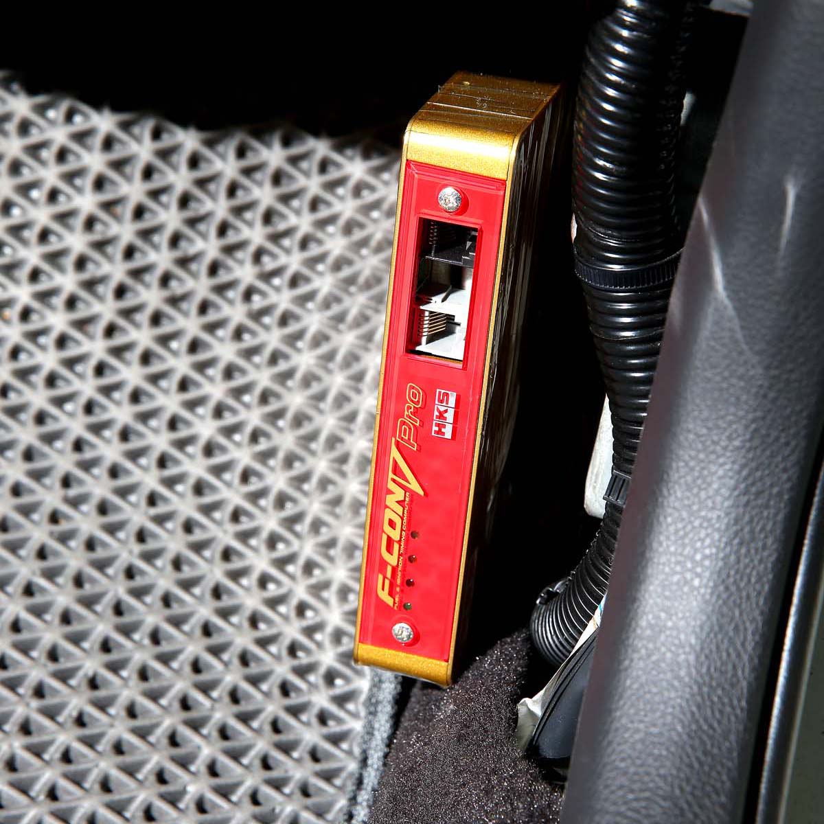 為對應強制進氣所帶來的高壓、高溫,改裝HKS鍛造活塞、連桿、高角度凸輪軸等強化腹內套件,而此渦輪增壓套件以GTSS為主,在保留自排變速系統的條件下,渦輪壓力僅設定於0.6~0.7bar左右,渦輪於引擎轉速約3000rpm時開始作動,約4000轉可到達全增壓,行駛於一般市區道路非常好開,渦輪遲滯現象輕微,若有意調校更大馬力,就需改裝手排變速系統。為提升進排氣效率,套件中包含一對高流量香菇頭,排氣系統則是後續追加的代觸媒、HKS Hi-Power中尾段排氣管,讓480hp最大馬力得以完整發揮。昶和實業負責人二哥表示,套件中並沒有包含可程式電腦,而身為HKS台灣總代理,當然為這輛G35裝上HKS旗下性能強勁的F-Con V Pro電腦,整合兩側引擎的渦輪壓力、空燃比、供油、點火等程式進行補正,讓V型引擎達到最佳平衡,也降低引擎爆震、異常震動的情形發生。