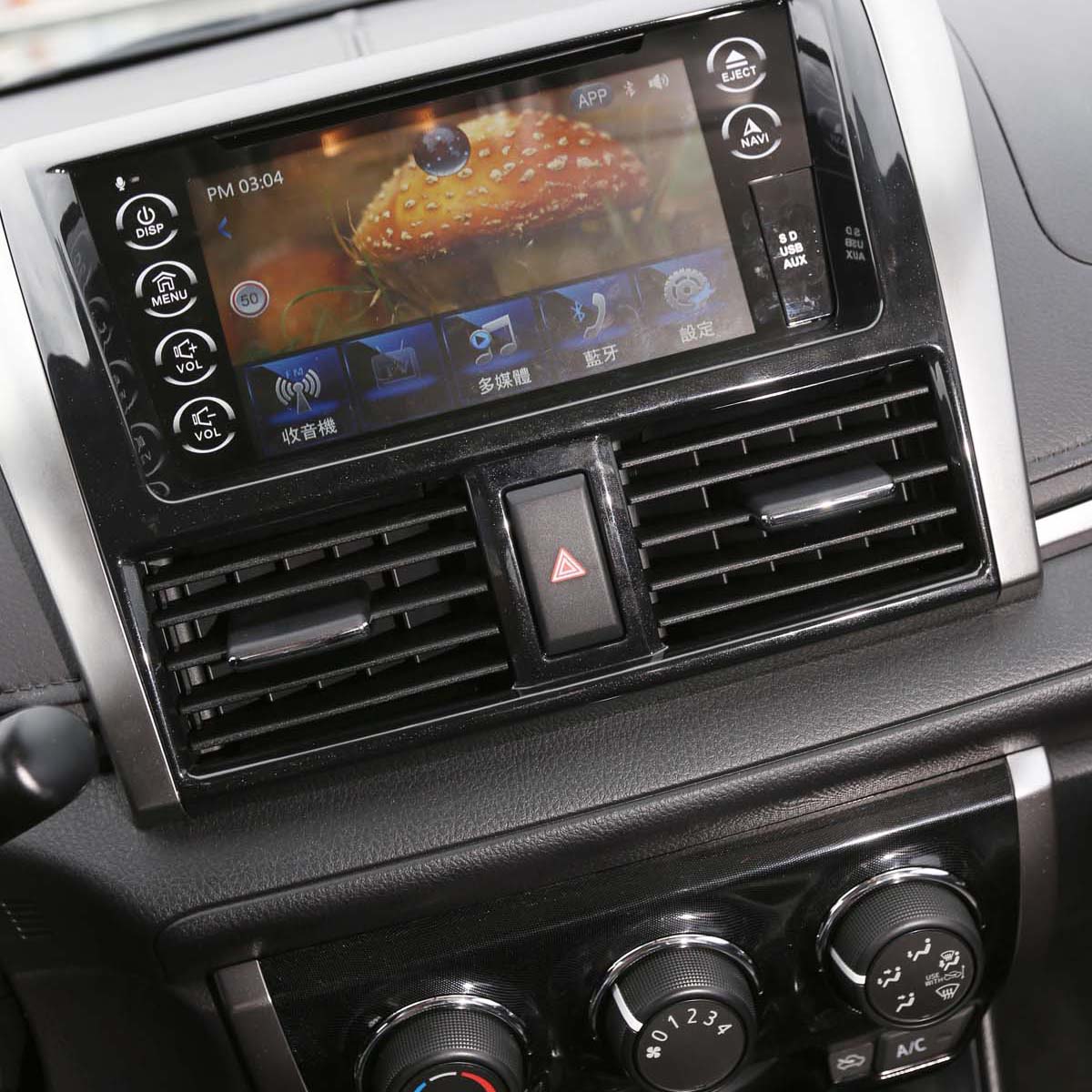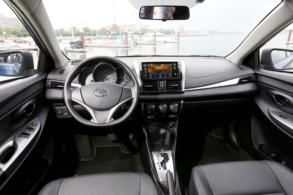 Toyota現行旗下車型內裝皆有著相當年輕化的設計,而Vios也有著相同的設計氛圍,唯內裝塑感仍頗重,質感不若City來得出色。配備上則走務實路線,行車資訊幕、Eco節能輔助裝置、CD音響(具AUX-in/USB外接音源埠)、BOS煞車優先系統及雙前座氣囊等為主要配備,整體豐富度與新City有段不小的差距,但若搭配其56.9萬的價格,那算是物有所值了。