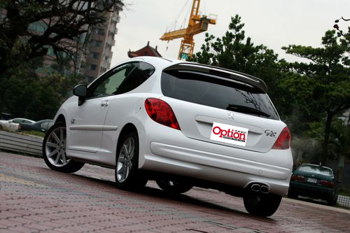 從外型來看Peugeot 207 GTi外型設計,主要是以207三門車款為基本架構,再加入一些為因應207 GTi高速行駛所需的套件而成,因此位於尾門上方、針對207車身線條量身打造的後擾流尾翼就是207 GTi所獨有的配備。這支尾翼在時速200公里的情況下,可提供達25公斤重的下壓力,對高速行車的穩定性有不小助益,可減少掀背車高速車尾漂浮的疑慮。