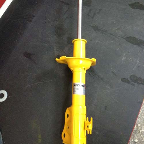 多數車款的原廠避震器為「大直捲彈簧」形式,這種設計有許多優點,圈簧較大,吸震力較好、緩衝較為Smooth、乘坐感舒適等,不利於激烈操駕應該是唯一的缺點,而原廠這樣的設定也是為了符合多數汽車使用者對於乘坐感的要求,許多車主就算決定要改裝,仍不願放棄舒適的乘坐感,那麼套裝固定式就是不錯的選擇。日本KYB算是套裝固定式避震器的代表之一,許多知名避震器(Ex:TRD)也是由它代工製造。就外觀上來看,「長相」與原廠避震器一模一樣,只不過減震筒烤上顏色,如果就內部設定來說,阻尼係數較強、部分型號為短筒芯設計,以這次試駕的New SR來說,主要是搭配原廠彈簧,部分車主有降低車高的需求,會選擇H&R短彈簧,倘若降低車高的幅度較大,可選擇KYB旗下筒芯較短的Lowfer Sports。