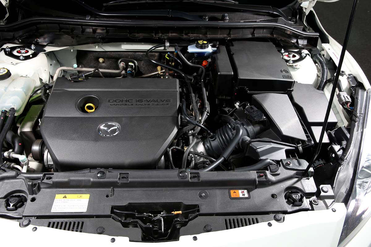 與上一代Mazda3相同也是搭載MZR引擎,可是動力輸出已從上一代的150hp/19.1kgm上漲到151hp/19.3kgm,主要差異是來自於汽缸頭科技。將S-VT序列式可變氣門正時系統、VIS可變進氣系統與TSCV渦流控制閥,導入這一代Mazda3 2.0 MZR引擎中,雖然動力升級幅度很小,但已屬難得。變速箱是另一個重點,第一代Mazda3 2.0僅配備四速自排變速系統,第二代Mazda3 2.0則是搭載與2.5S相同的五速自排變速系統,這款名為AAS電子控制的五速手自排變速系統,可依照路況、G值感應、方向盤角度與油門深度等參數,選擇最適當的檔位,另外,其所新增的DAM(Direct Activematic)智慧型檔位切換系統,不需將排檔桿切換到M模式,可在D模式下直接按下方向盤的Down鍵進行退檔,增加行車樂趣與便利性。Option編輯部詢問過Mazda3車友的意見,許多車友認為第一代Mazda3 2.0的低中速加速表現不好,不如其它2.0車款來得輕快,不過第二代Mazda3 2.0進步不少,會有這樣的改變應該與TSCV渦流控制閥、VIS可變進氣系統,還有齒比較綿密的五速自排變速系統有關。