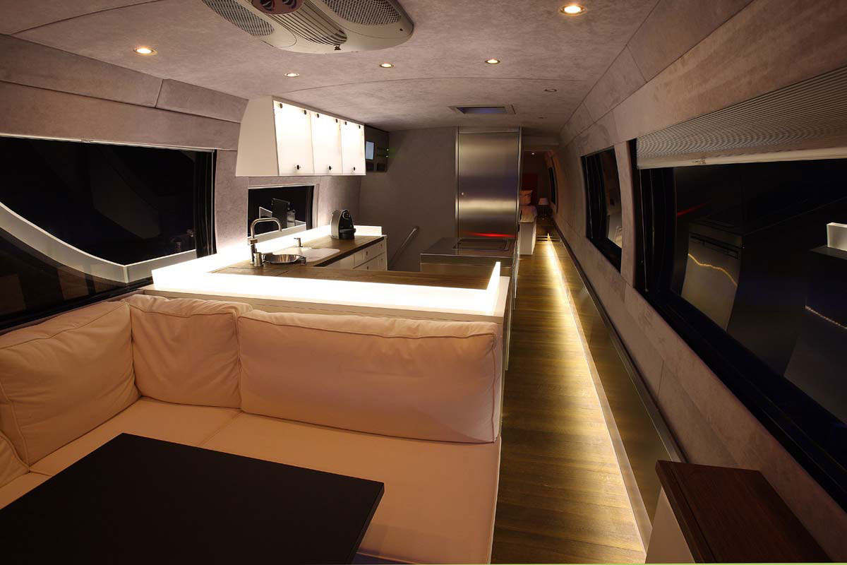 很多結了婚有了小孩的人只要一有空幾乎都是陪著家人,在也沒有過去那樣能夠享受自己的空間,Volkner Mobil這家公司則是為您解決這個問題,這輛大傢伙是Volkner Mobil完全針對客人所需的客製化行動露營車,內部的裝潢到餐具的配置通通都可以依照顧客需求打造,另外最特別的部分就是車輛下方可以提供一輛汽車收納的空間,讓你不僅可以帶著家人趴趴走,連最愛的大玩具也都可以跟著走。