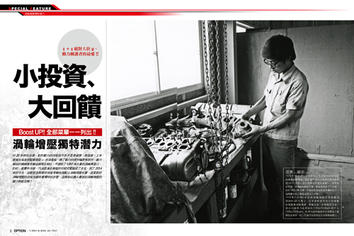 約20年前在台灣,對於動力的改裝就不外乎是香菇頭、排氣管、上半座拋光或是搭配簡易型+-供油電腦,除了動力的提升幅度有限外,動力輸出的精緻度也無法與現在相比。不過到了1997年大量的渦輪車進口,EVC、前置中冷器、汽油泵浦及高檔的可程式電腦成了主流,到了2014年的今天,放眼望去就算非性能車輛也搭配上渦輪增壓引擎,店家對於渦輪增壓的改裝也都有著獨特的步驟,這樣如此讓人著迷的渦輪增壓的魅力到底在哪?