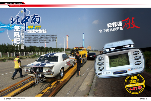 睽違已久的Option加速計測,在經過一連串的思考後最後決定以較精緻的手法來包裝,希望能揮別過去多車無意義的方式。主要是以編輯部主動搜尋北中南的車輛為主,希望再度使得這個單元活耀起來。這次特別找到在上個月Option Cup Drag Racing中的幾輛猛獸,替這個單元做暖身!