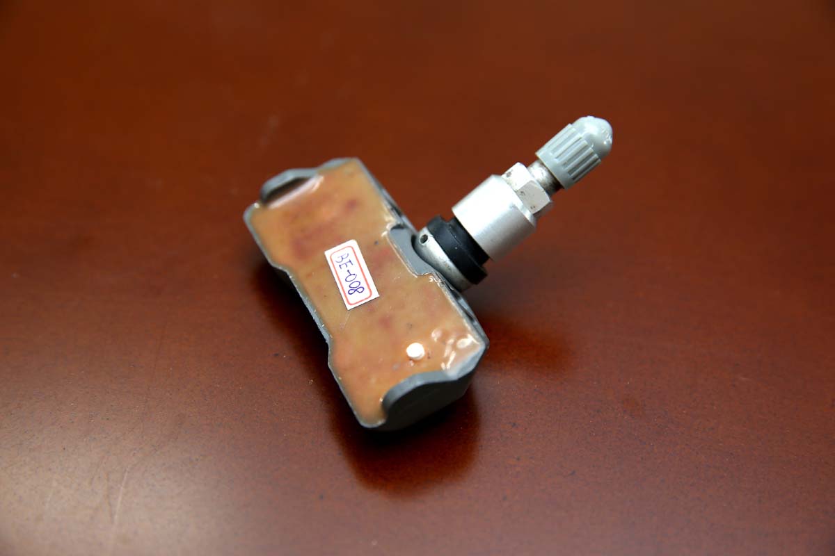 | 這就是用來感知輪胎壓力、發射偵測數值的發射器,各位可以看到電池以及IC板,每個廠牌的發射器外觀大同小異,而內部程式才是影響品質的關鍵。 |