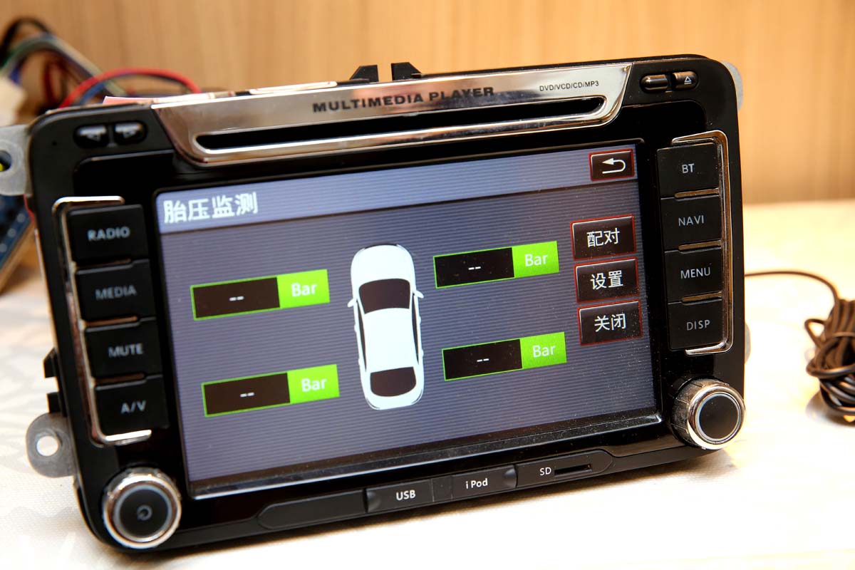 | 日本、韓國、大陸等國也開始陸續導入TPMS,像圖中就是上海大眾汽車的原廠液晶螢幕,已將TPMS系統整合於其中。 |