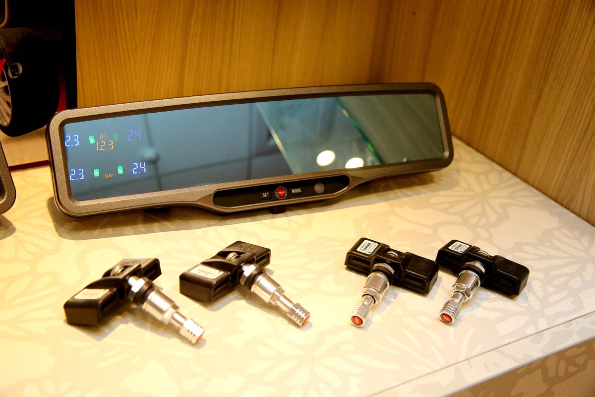 | 目前TPMS研發技術已相當成熟,接下來就是顯示幕的整合,像圖中就是與後視鏡合而為一。 |