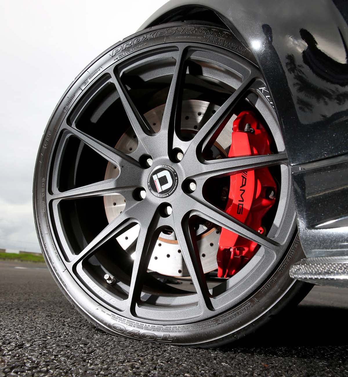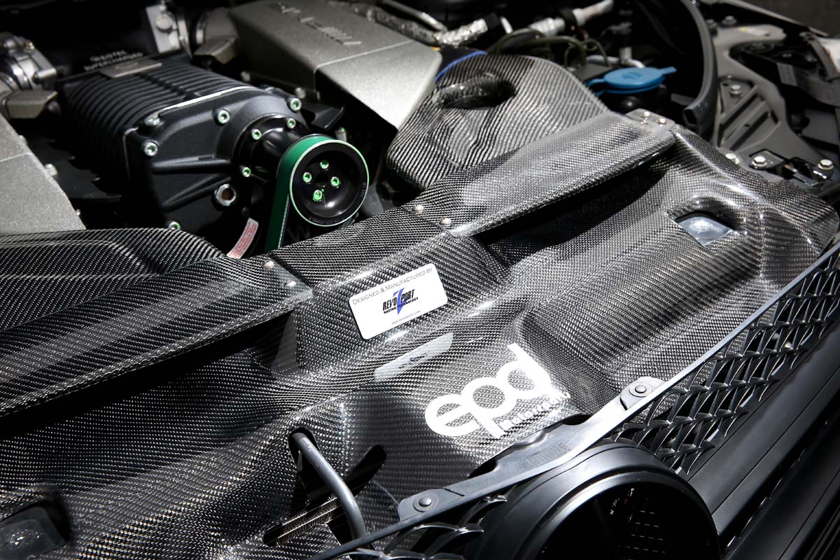 藏在C63引擎蓋內代號M156,6.3L V8自然進氣本體,其實與SLS車系上完全相同,不過因為C系列的車型較小,因此M.Benz特別將動力調降至457hp,而扭力部分還是有著大排氣量的特色,61.2kgm的扭力搭配AMG的SpeedShift MCT 7G-Tronic,讓這輛黑色塗裝的優雅怪獸擁有原廠4.4秒破百的威力。不過這樣對於性能迷來說還是不夠嗆辣,畢竟自然進氣車的高速威力還是略顯不足,因此EPD Motorsport替該車選定了Weistec Superchange套件,而且一次就攻頂直接選擇Stage 3套件,3.0 L Twin Screw Compressor在0.8bar設定下可發揮769hp的極致性能,周邊部分除了水冷式中冷器外,Stage 3套件內還有八支加大噴油嘴及加大節氣門,好讓引擎能夠完全消耗這多出的318hp,另外還有一個好料,就是MBH4-2-2-1的排氣頭段+中段+X-pipe,MBH表示M156引擎單單更換這組排氣系統就能多出70hp的動力。
