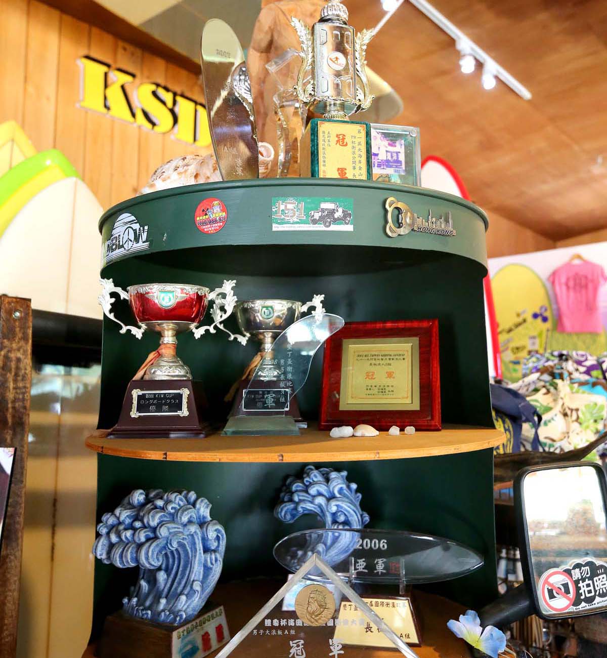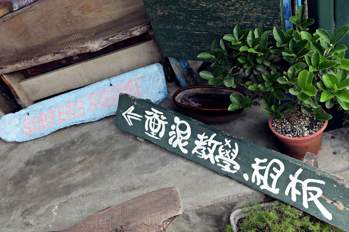 佳樂水是著名的墾丁景點之一,阿水衝浪就位於港口吊橋旁,來到這裡真的就像是進入樂園般,有寬敞的空間、好視野、以及許多阿水自己手繪、DIY做的東西,順道一提美工科的他,完全是位藝術家無誤,然後把其融入在生活中的所有,個人風格真的很強烈,家裡、車子也好、衝浪的姿勢、店裡的每個角落等,通通都充滿~水式調調「Aswey Style」。