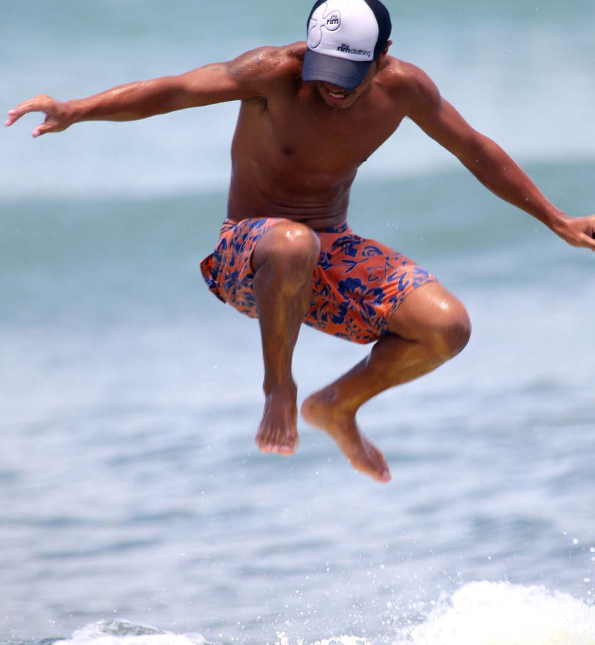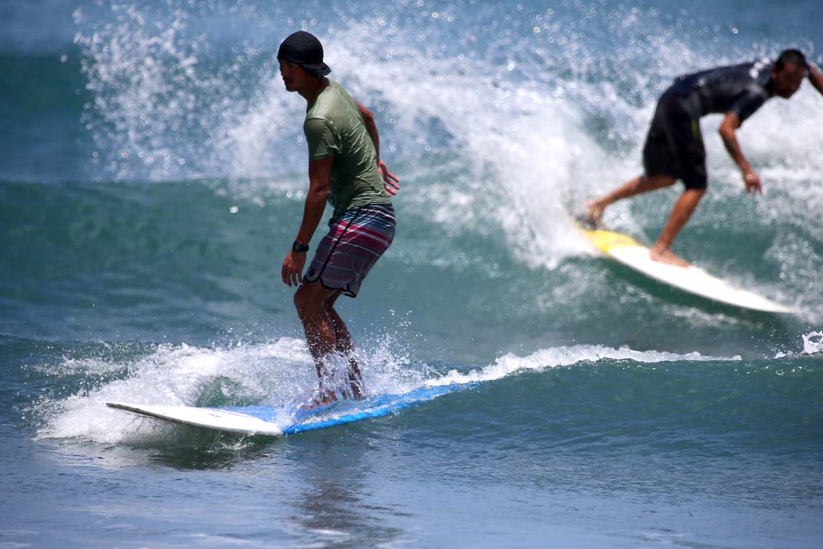 帶著練習板下水囉!衝浪板有不同的板型與材質,分別為長板、短板等…而練習板為長板,表面包覆著軟質泡棉,有較大的浮力,讓初學者能夠充分的練習平衡以及基礎的划水、起乘、越浪、斜跑等動作。當你練習到一個程度之後,熟悉了衝浪板與海浪的節奏,就可以開始花招百出,與三五好友一起在浪板上作怪,倒立、跳躍,甚至直接在海上交換衝浪板,衝浪可以是很享受在自己的空間裡,也可以是大家一起團體的一項運動。