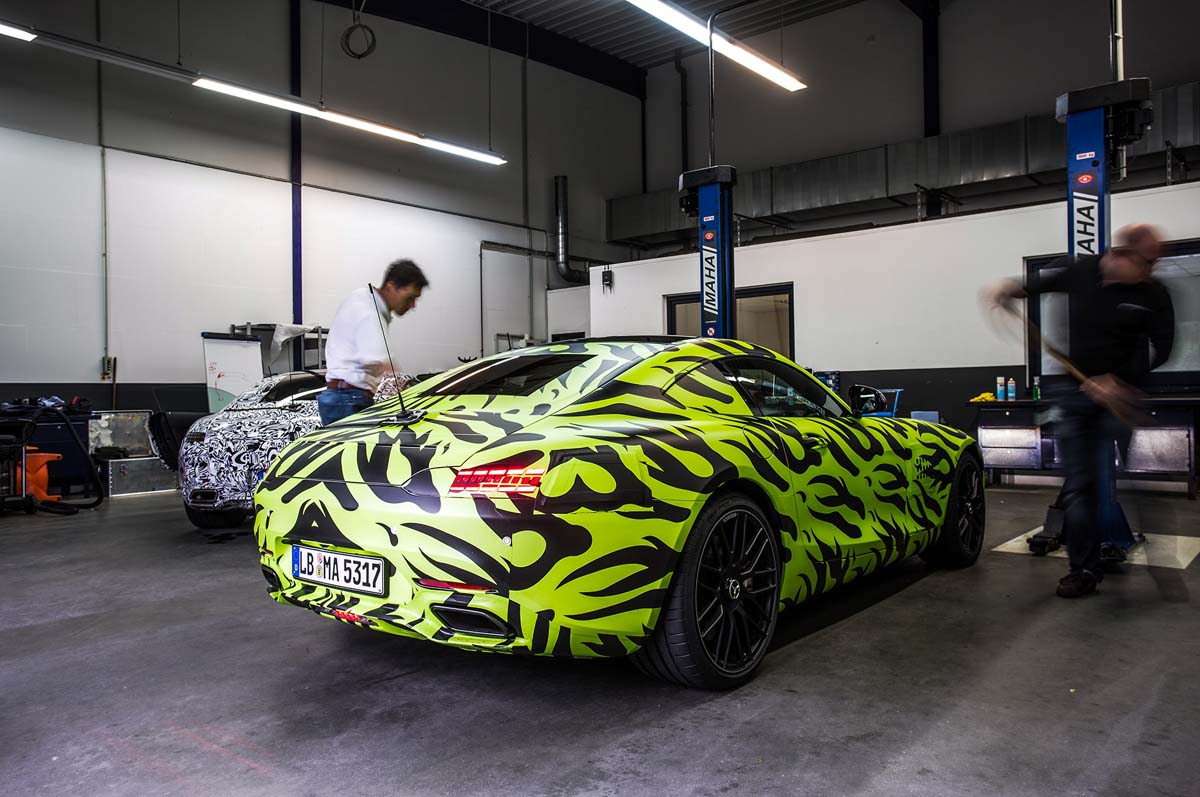 深受全球超跑車迷所矚目的AMG全新雙門跑車「AMG GT」,繼先前釋出內裝照以及外觀輪廓圖與動力系統的預告影片之後,近期又再度邀請全球知名汽車媒體搶先體驗這部超跑的性能魅力,雖然試駕車款仍是貼滿偽裝貼紙的原型車,但也藉此活動讓大家知道這款用來獵殺Porsche 911、Audi R8與Nissan GT-R的AMG GT更多的相關細節與規格。從預告影片所透漏的訊息指出,AMG GT將會在今年第四季正式現身,因此預估其相當有可能會在今年的巴黎車展進行全球首演。