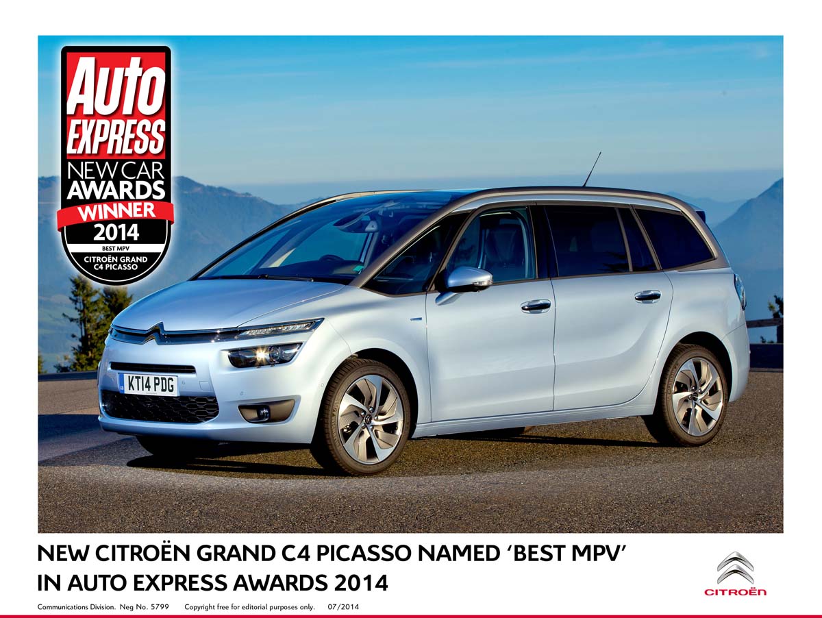 至於7人座MPV車款Grand C4 Picasso,雖然為不屬於DS車系的休旅車款,但其充滿科技感的前衛頭燈設計,以及與廠徽線條結合的方向燈,加上強大的空間機能性,使其榮獲今年的Auto Express最佳MPV獎。有著比前一代輕上110kg的車重,雖然4590mm的車長維持不變,但軸距增長至2840mm之譜,提供更寬敞的空間彈性。採3排7人座的設定,具有相當舒適質感的皮椅材質,基本載物容積為645公升,更可藉傾倒第二排座椅,讓承載容量達到超過700公升。