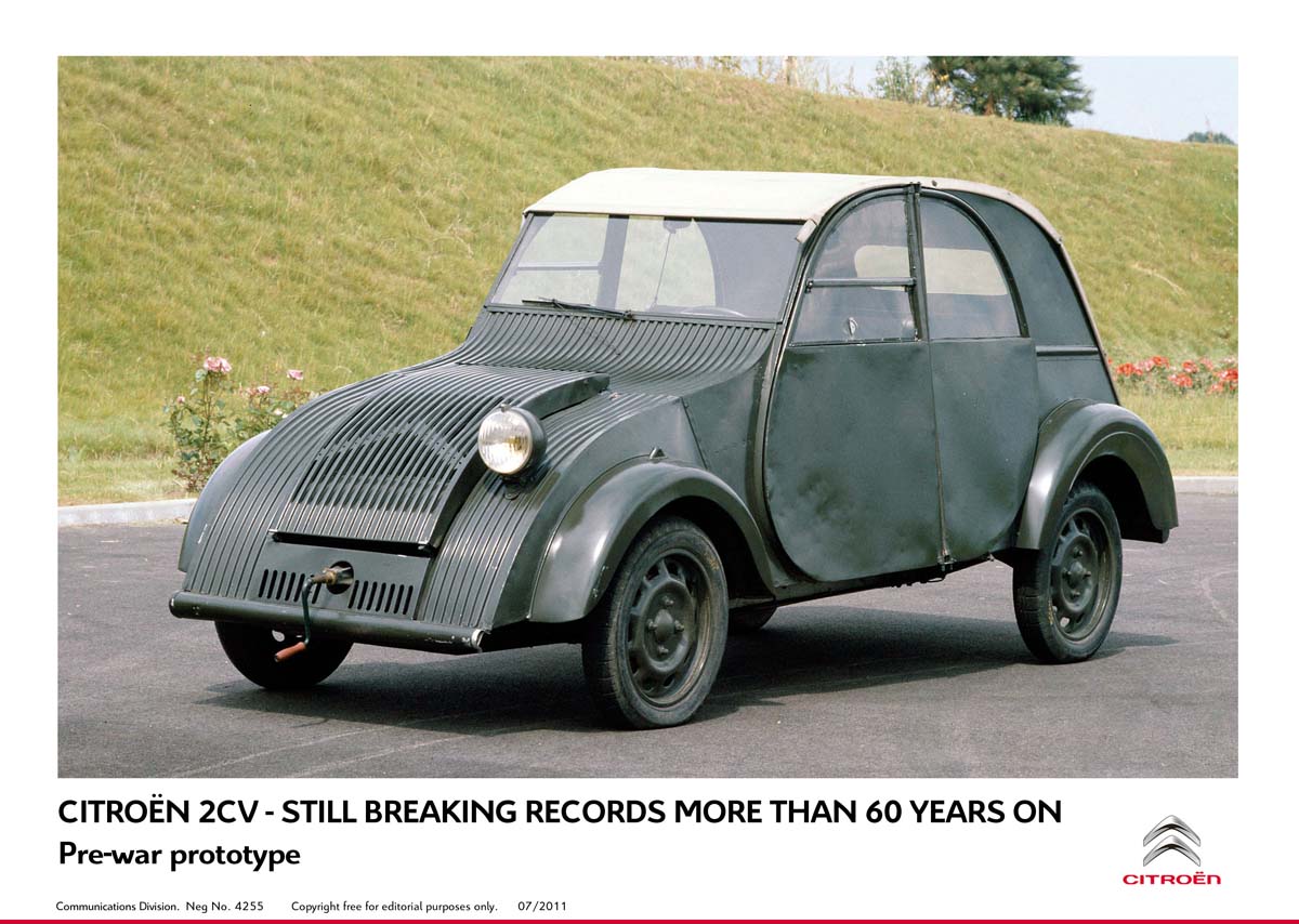 | 於1948年登場的2CV,以簡單的機械構造提供法國鄉村民眾在馬匹之外的摩托化交通工具。 |