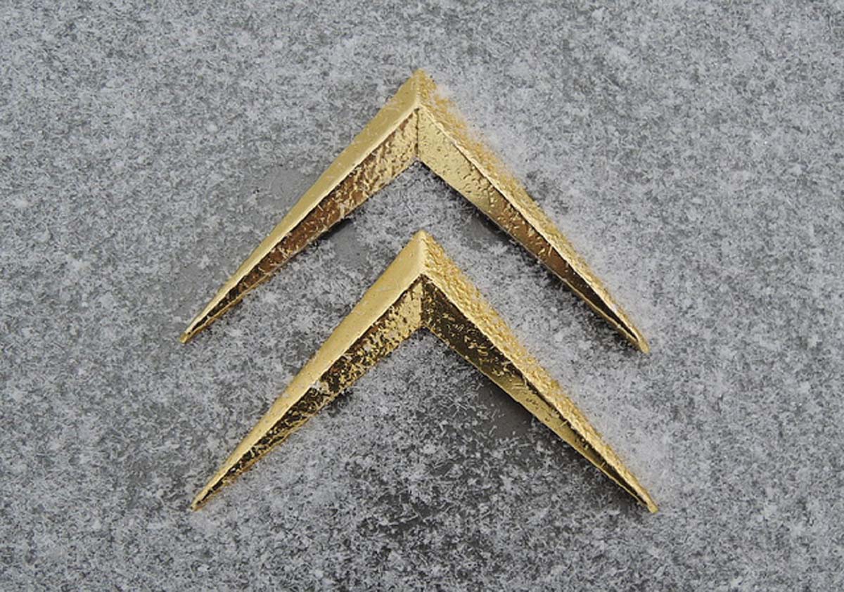 話說22歲的Andre Citroen曾在波蘭旅行時,發現了一種用於製造業的箭頭狀的齒輪設計。他隨即買下了這項專利並用於其鋼鐵工廠。1912年Andre開始以雙箭頭形齒輪作為Citroen公司產品的廠徽。此圖案的意義為兩個箭頭形齒輪的緊密咬合,象徵汽車工業相連結的驅動力。