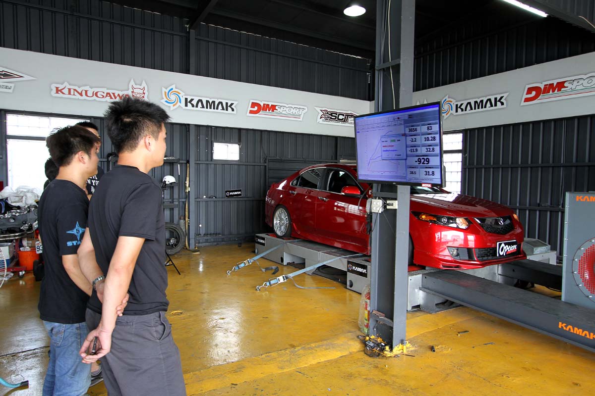 | 比較兩種測試方式,馬力機測試比較有樂趣,且數據分析起來也比較豐富,每次測試改裝品時大家都很關心結果,至於使用的馬力機則選擇肯瑪渦輪廠內的四驅馬力機,在此特別感謝肯瑪渦輪的協助。 |