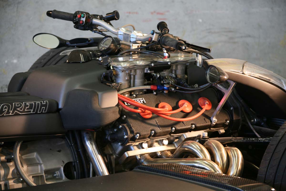 法拉利魂注入 這輛四輪機車?沙灘車?還是一輛怪獸?筆者不知道該如何下定論,這輛命名為Wazuma V8F Matt怪獸到底有多誇張?動力部分搭載著由法拉利所生產3.0L V8引擎,最大馬力上看250hp,變速箱則是使用BMW M3上而來,搭配上僅有680kg的車重,Wazuma V8F似乎有些太過誇張。目前這輛車報價275,260美金,或許有些昂貴,但這絕對是一輛令車主血脈噴張的怪獸。而這輛車的操控方式是採用機車的龍頭方式,Modified Momo輪框內所藏的是Brembo卡鉗,特製的水平EMC懸吊系統也在主要部品之列。根據Masmoto表示目前這輛怪獸要價275,260美元,是否真的有價值就待車主購入後自己品味一番吧!