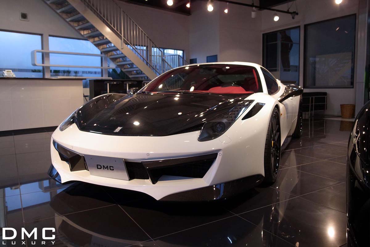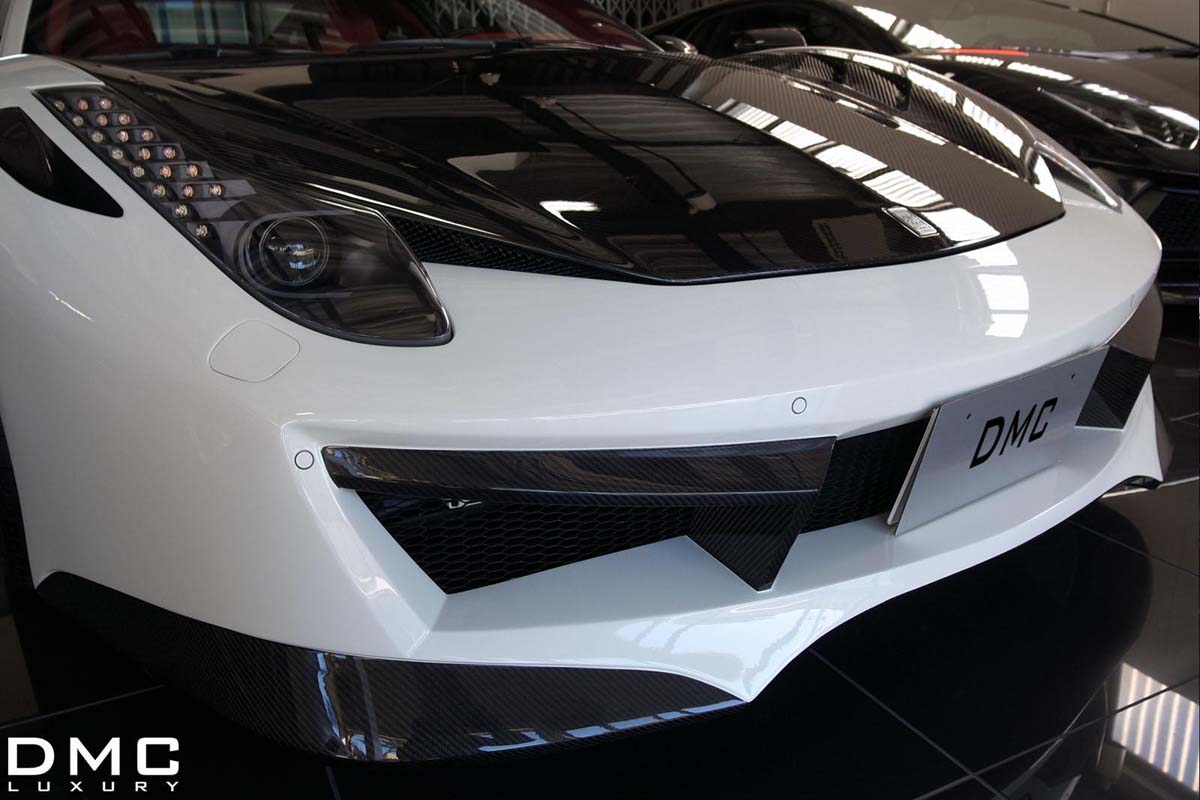 DMC改裝廠將這部Ferrari 458 Italia命名為DMC 458 Ferrari Estremo Edizione 10/10,顧名思義就是限量10組。前保桿的大型進氣孔除了提供更大量的冷空氣外,對於提升車頭的下壓力也有一定程度的效益,外加的側裙部分不過分誇張但卻又能保有一定的視覺享受,車尾全新設計的大型尾翼與引擎蓋都相當吸睛。而以上空力套件材質皆是採用碳纖纖維製成,DMC表示這款空力套件更能有效減重60kg,動力部分除非車主有特別需求,一律都是採用最大動力580hp之譜的原廠4.5L V8自然進氣引擎。