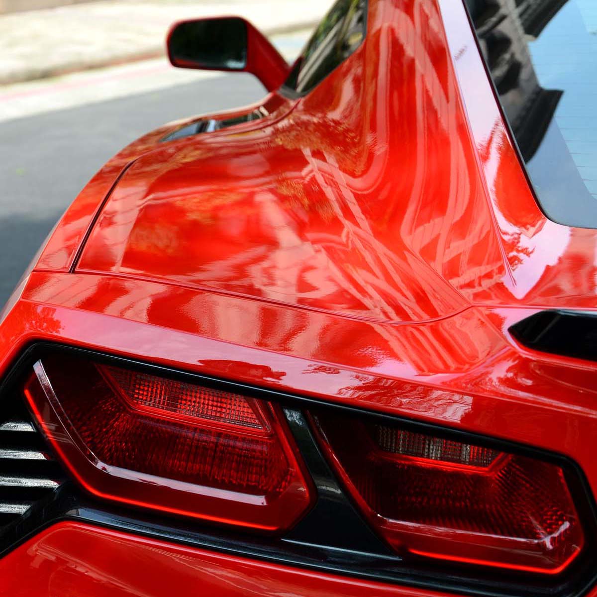至於現行的第七代Corvette,當然不再需要以這樣克難低成本的製作方式生產,但是為了保持Corvette的傳統,車身還有部分保留以玻璃纖維材質,其他則以現在常見的輕量化材質──鋁合金製作。過去的Corvette有著獨特的寬扁曲線,明顯不同於其他的超級跑車,新一代的C7車款則向歐系超跑看齊,造型設計上跟過去的Corvette相比出現了較大的變化,雖然整車的線條邊緣變得比較銳利,但車身曲線仍十分鮮明。車尾部分的設計看得出新世代車款同時想保留經典又想創新的設計思維,尾燈採用四燈式設計,但燈具的造型從過去的橢圓形改為角型,以搭配變得銳利的車身線條,排氣管的設計則維持中央四出尾管,雖然細節與前幾代Corvette不盡相同,但整體來說則保有Corvette一貫的風味。