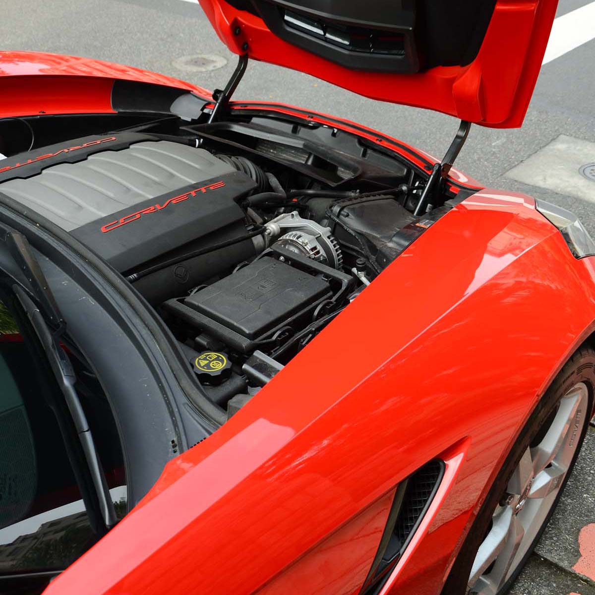 在操控方面Corvette展現出了與我們熟悉的歐洲跑車不太相同的特性,我們駕著這部車上路,一開始我們就訝異於它的舒適性,以超跑的標準來看,它的懸吊設定相當軟性,有著接近房車的乘坐感,一開始我們懷疑這樣的設定真能讓Corvette擁有符合跑車風格的操控特性?但在幾個彎角之後,我們漸漸習慣Corvette的懸吊,雖然它仍讓我們覺得設定偏軟,但在彎中卻能提供充裕的支撐,而Corvette的操控也讓人能夠輕鬆上手。隨著駕駛時間的增加,我們漸漸發現更多Corvette不同於歐系超級跑車的一面,相比於歐系跑車神經敏銳的整體反應,Corvette在一般速度下的輕鬆慵懶似乎更讓人能無壓力地駕駛這部車,對於代步交通的適應性絕佳。雖然說Corvette對於車迷來說並不陌生,但它的稀有度倒是讓我們在試駕時一路不斷受到注目禮,鮮紅的車身以及獨特的造型一路上不停吸引眾人的目光,無需發出驚天狂吼,Corvette已經是天生的目光收集器;對於看多了牛馬超跑的人們來說,Corvette的不同風味確實帶來了獨特的感受。