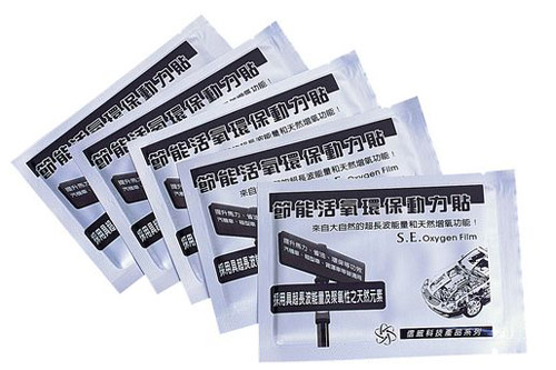 節能活氧環保動力貼材質為黑色稀有礦石,可產生半永久性長波、磁力線與超高微分子,還可降低集氣箱內一氧化碳,進而提高引擎燃燒效率達到省油效果,假使家裡沒有汽車,機車同樣也可使用。