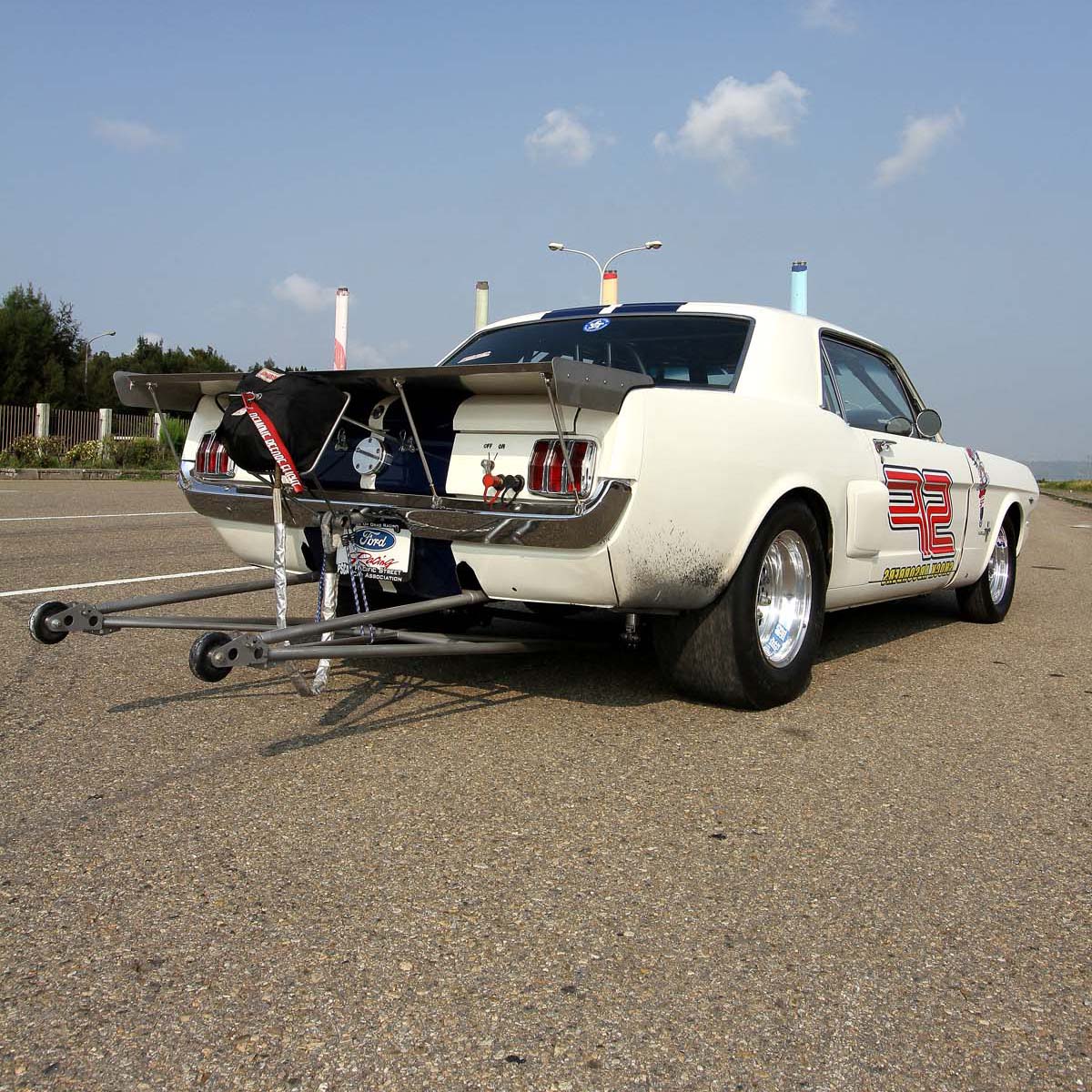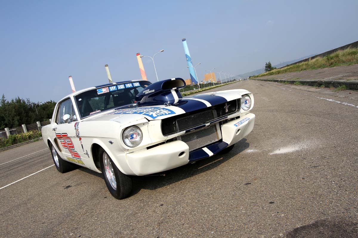 這輛就是上個月在Option Cup Drag Racing中,以RT+ET做出零四12.341秒,通過末速225.0km/h的1965年Ford Mustang。在CU-IN 427自然進氣引擎原本就能榨出780hp的條件下,再搭配上490hp濕式NOS後,就算是在台中火力的路面下,280mm胖胖胎在動力介入時依舊會出現後輪橫移的情況,就算換上二檔瞬間,後輪也都會冒出濃煙,彷彿就像在看D1甩尾秀般震撼,話雖如此不過該車在氣溫高達35度的白天還是做出5秒內的成績。