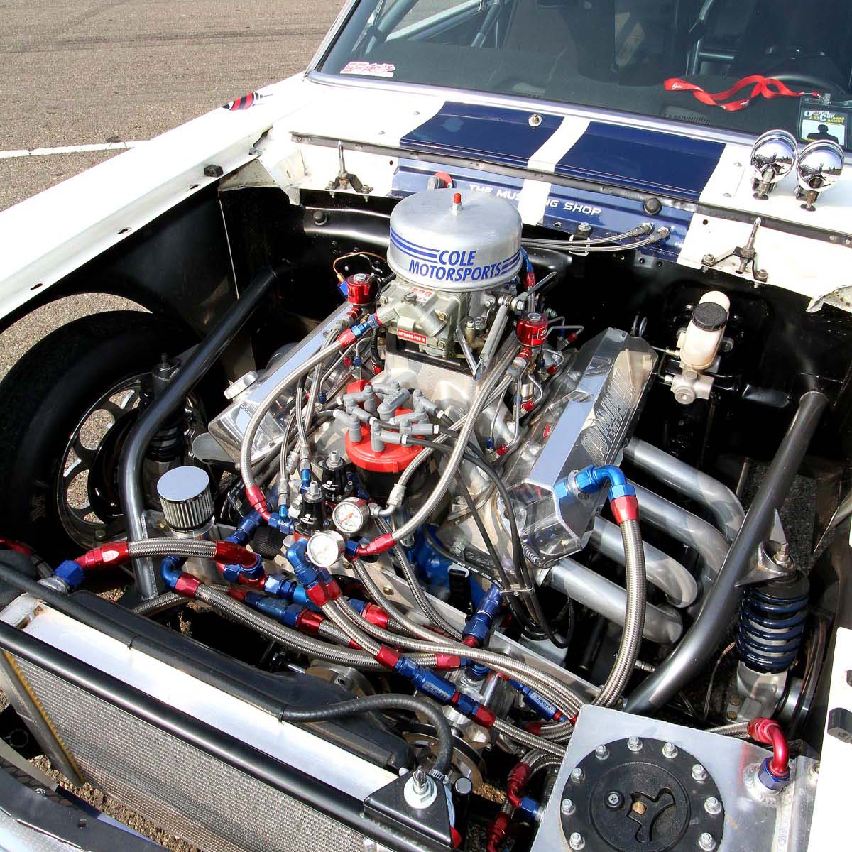 這輛怪獸的引擎部分基本上就是以自然進氣搭配NOS為主,並沒有採用任何強制增壓手段來壓榨動力,CU-IN 427這具鑄鐵材質的V8 SOHC 7000c.c.引擎本體,在1963年時就是為了賽車為目的誕生,在引擎本體、活塞、連桿及曲軸的強化、上半座的性能提升及Ford Performance進氣岐管的輔助下,這具CU-IN 427本體,在自然進氣的條件下就能擁有780hp的最大輸出,其餘的部分就交由擺放在副駕上的白色鋼瓶來負責,濕式NOS以每缸一支噴嘴直接注入缸頭內的設定,光NOS就可額外提供490hp的動力輸出,另外由於是採用化油器的設定,因此油氣混合比只能靠化油器內油針大小來取決,點火部分則採MSD強化點火來控制,汽油部分原本出廠設定就是食用VP C16(辛烷值117),不過目前台灣僅有Q16(辛烷值116),因此馬力輸出方面也會有些許折扣。