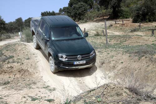 經過一個上午的一般道路試駕體驗與拍照行程,我們終於隨著衛星導航+地圖路書的指引,於中午時分來到了VW商旅德國原廠在西班牙Andalusia地區的附近山區所規劃出的Off Road四驅越野測試場地。雖然德國原廠在現場提供包含Amarok、Caddy、Crafter、T5在內的全車系4Motion四驅車型,但受限於僅有一個下午的有限時間,以及場地中仍有其他國際媒體也在同時進行試駕體驗等因素,我們最終還是將此次的四驅越野體驗鎖定在即將於2012年第2季導入國內銷售的Amarok八速手自排車型上。