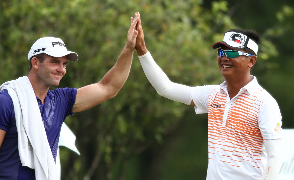 | 泰國選手沙塔亞‧蘇普蘭邁(Sattaya Supupramai)在第一回合的賽事中氣勢旺盛,以66桿的優異成績與台灣選手黃東樑暫列第一。 |